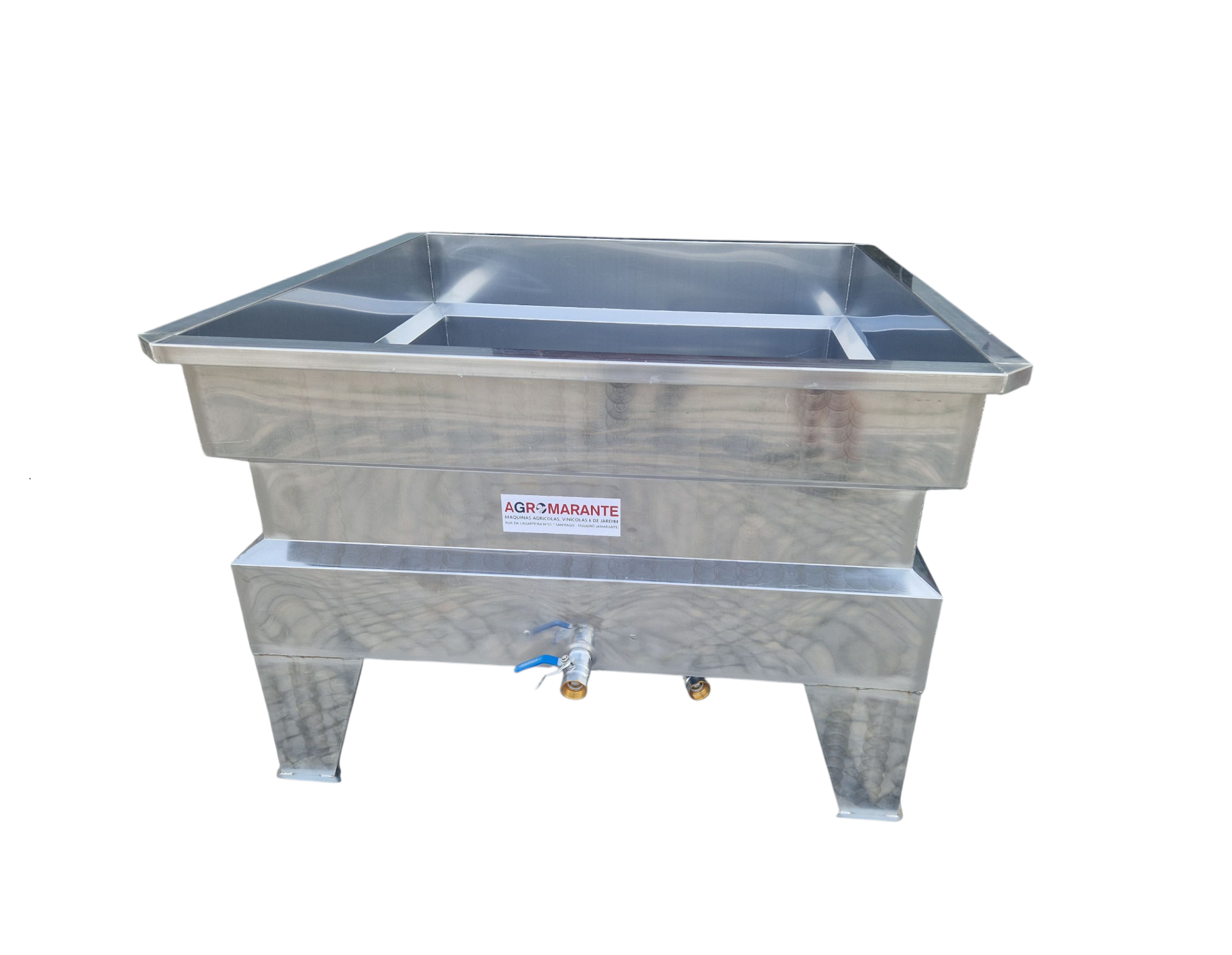 Lagar Inox 1000 Litros 900,00 € 1.283,68 € Desconto de %. Partilhar Comprar Contactar Lagar em Inox Inox: AISI304 Capacidade: 1000 Litros Medida Interior: 125x125x62 cm Medida Total: 137x137x90 cm Pernas: 4 Passador Saida: 1 1/4" Passador de Limpeza: 1 1/4" Inclui: Crivo no Fundo Peso: 51 kg Marca MTS