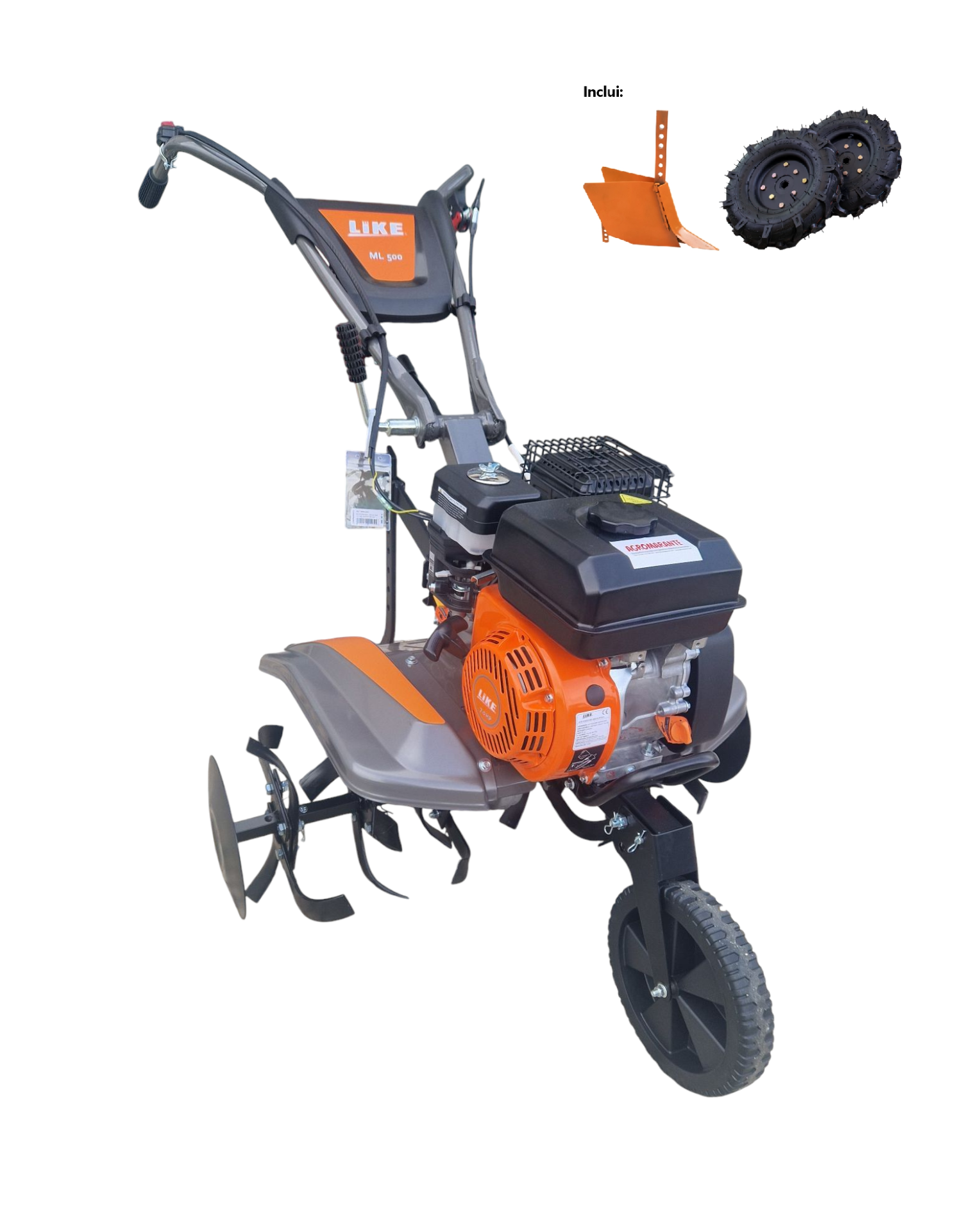 Motoenxada Like ML500 7cv 2+1 600,00 € Desconto de %. Partilhar Comprar Contactar Motoenxada a Gasolina Marca: Like Motor: Like 4T Cilindrada: 212cc Arranque: Manual Velocidades: 2 Frente + 1 Trás Largura Trabalho: 90cm Transmissão: Correias Volante: Regulavel em altura Peso: 62,5 kg Inclui: 1x Par Freses 1x Par Rodas 1x Abre Regos Marca LIKE Características