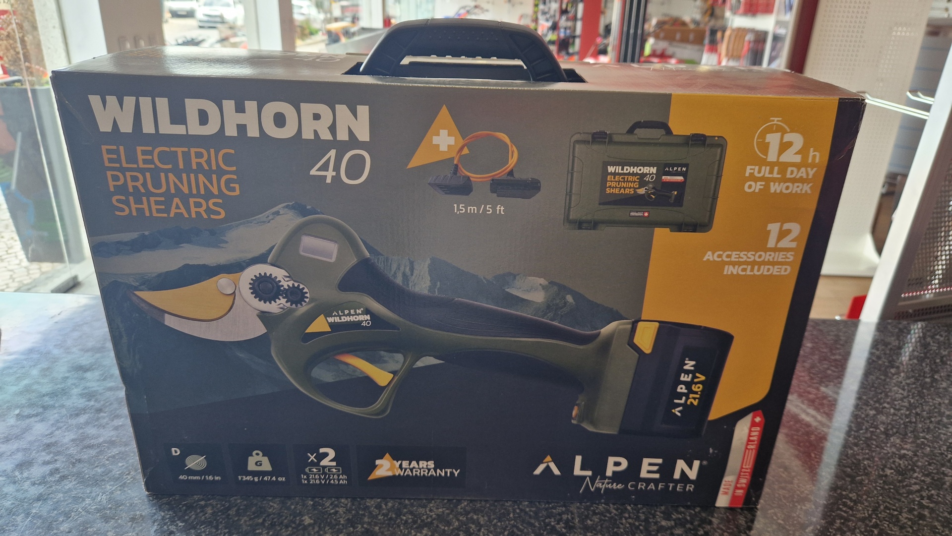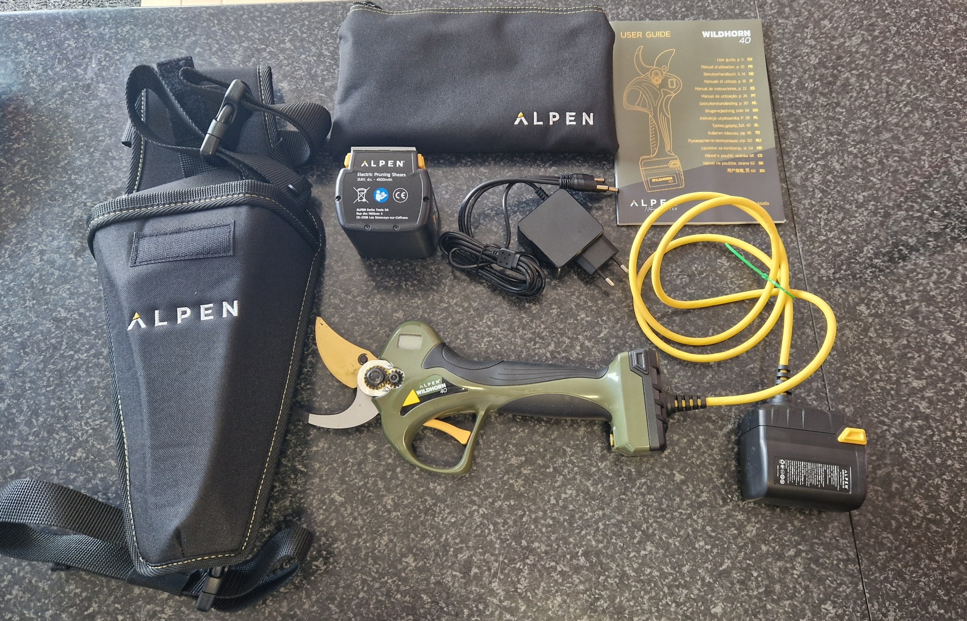WILDHORN 40 FORNECIDA COM CABO DE EXTENSÃO DE 1.5M PARA UTILIZAR A TESOURACOM A BATERIA NA BOLSA (peso da tesoura c/ cabo: 980g)